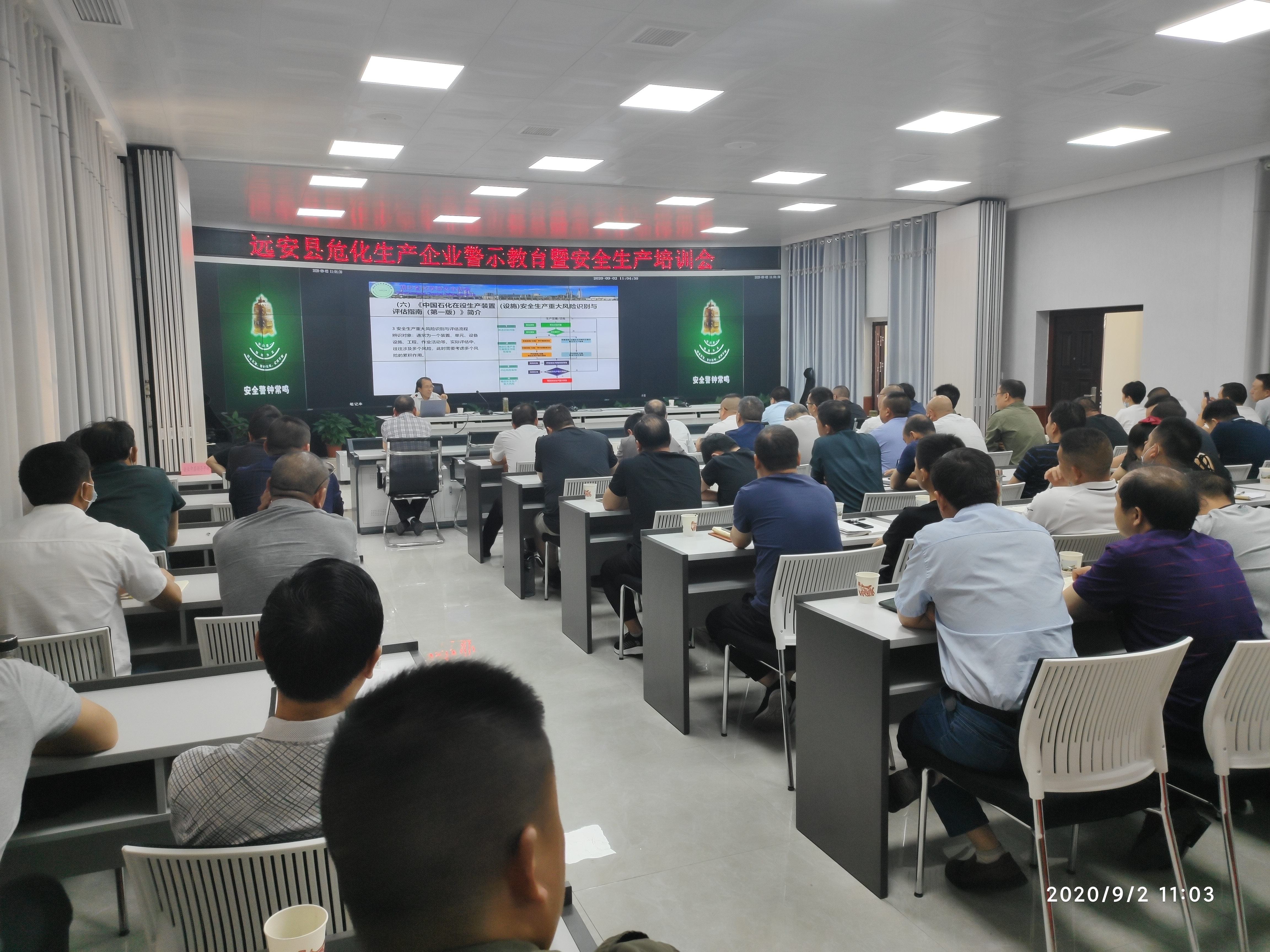 2020年9月2日,远安县应急管理局组织召开“远安县危化生产企业警示教育暨安全生产培训会”,会中,湖北省化学品安全协会专家徐佐清、工作人员颜靓针对风险分级管控和隐患排查治理双重预防机制建立开展专题培训。远安县县长,县应急管理局局长、副局长及相关工作人员,远安县各危化企业负责人、安全管理人员参会。