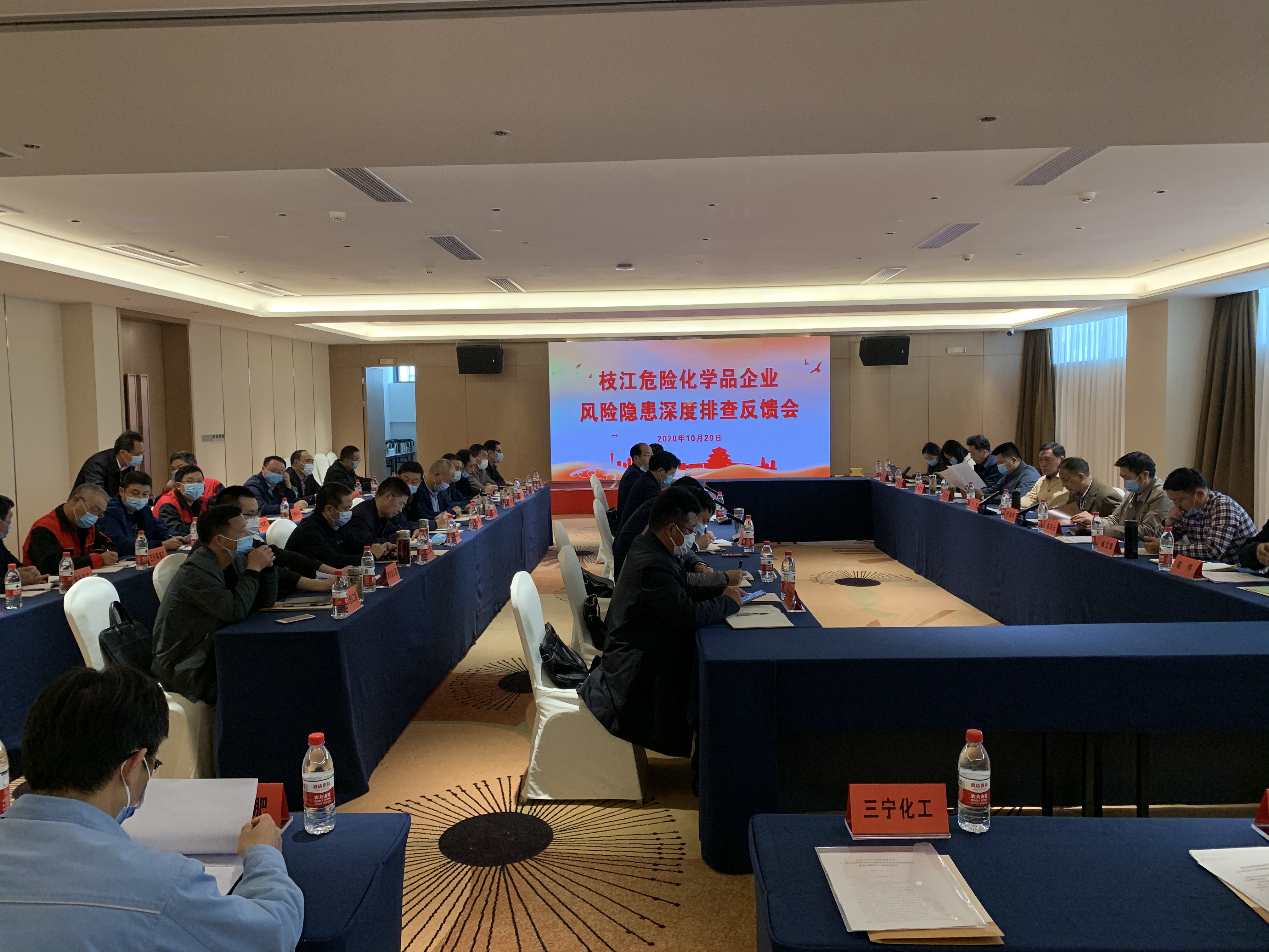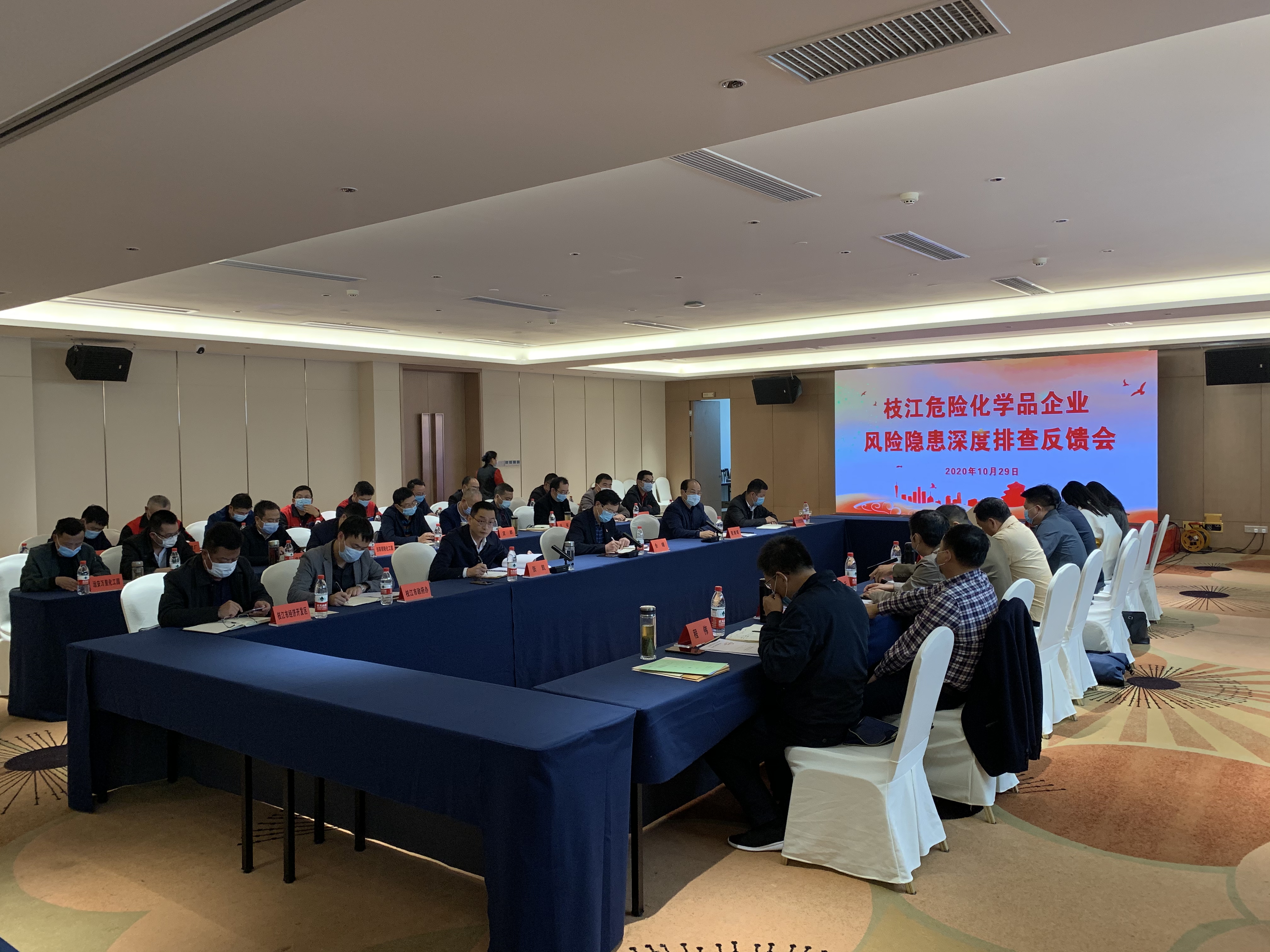 2020年10月29日,省应急管理厅党委委员、总工程师徐克一行督查危险化学品企业风险隐患深度排查隐患整改工作召开反馈会,下午两点半在枝江丹阳国际大酒店三峡春会议室召开,参会单位有湖北省省应急管理厅、宜昌市应急管理局、枝江市委书记市长以及各企业负责人,参会人员约70人。会议由省应急管理厅危化处处长关业华主持。会上,湖北省应急管理厅宣教中心对“仙桃8.3事故”、“天门9.28事故”进行技术剖析,湖北省化学品安全协会秘书长詹学贵通报枝江市危险化学品企业风险隐患深度排查工作情况,随后枝江市委副书记、市长余峰作表态发言,省应急管理厅党委委员、总工程师徐克作重要讲话。
