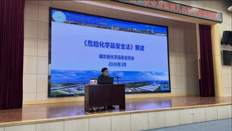 《中华人民共和国危险化学品安全法》5月1日正式实施进入倒计时,为抢抓新法实施窗口期,推动企业提前对标合规,全面压实危化品企业安全生产主体责任,3月27日至28日,孝感市应急管理局联合湖北省化学品安全协会,在应城市举办2026年化工(危险化学品)企业及监管人员安全管理培训。应城市市委常委常务副市长徐安平为活动致词,对本次培训活动落地应城表示热烈欢迎,同时着重强调了化工行业是应城市的重要产业,在地方经济发展中占据关键地位,而安全生产是化工行业发展的底线与前提,唯有守住安全防线,才能推动行业持续健康发展;孝感市应急管理局党委委员政治部主任杨锐敏讲话,深刻阐释了《危险化学品安全法》实施的重大意义,指出新法的落地是危化品安全管理领域的重要里程碑,同时明确了2026年孝感市危化品监管工作的重点,要求全市监管部门与相关企业切实抓好新法宣贯落实、隐患排查治理、企业主体责任压实等核心工作。湖北省化学品安全协会秘书长詹学贵讲话表示,《危险化学品安全法》的出台标志着我国危险化学品安全管理从行政法规层面上升至国家法律层面,是对原有条例的全面升级与系统重构,新法在法律地位、管理理念、监管体系、法律责任等方面实现了重大突破,同时强调化工行业作为国民经济支柱产业,安全生产形势依然严峻,企业需提高政治站位、聚焦主体责任、突出风险防控,政企协三方更要协同配合,协会也将充分发挥专业优势和桥梁纽带作用,为企业提供全链条专业服务,助力行业安全高质量发展。本次培训以“集中授课+实地调研”模式,为全市各县(市、区)应急管理部门、化工园区及危化品企业相关负责人送上“干货满满”的安全课,有效搭建政府、企业、协会三方沟通平台,为防范化解危化品领域重大安全风险凝聚共识与合力。